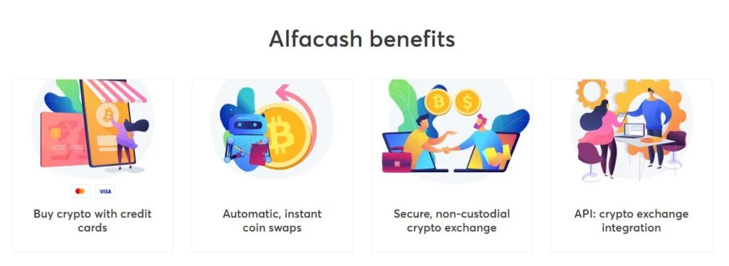- Noncustodial services. Alfacash serves as an intermediary and never keeps any of your money.