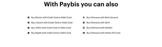 Acceptance of credit/debit cards. Paybis is one of the few exchanges that accept these payment methods. To purchase cryptocurrency, you can also use Neteller and Skrill, as well as bank transfers, and even Bitcoin.