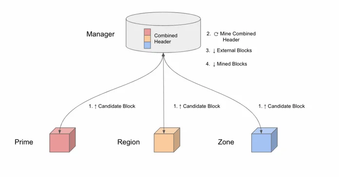 The Prime Chain is at the core of the entire network, utilizing a hashing algorithm that is shared across all subordinate chains (Region and Zone). It aggregates and settles state transitions across the network, which means miners are required to mine the Prime Chain to keep the blockchains functional.
