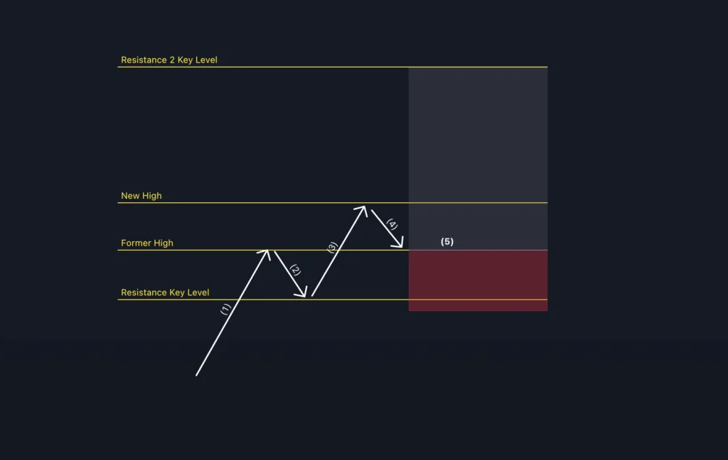 - Entry at former high and place stop loss below key level, targeting the next key level