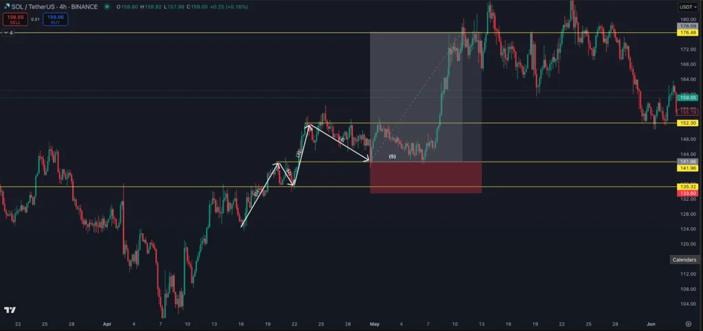 Take for example Solana’s price action during the period of late February to May 2025 (figure 2). $135 was a significant key level for 4 weeks acting as support, until price completely broke below the key level in early March which then acted as resistance. The sequence of the long confirmation setup is as follows: