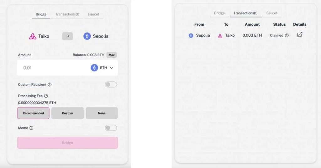 - Transfer tokens from Taiko A2 to Sepolia. This is basically the same steps as point 5 above.
