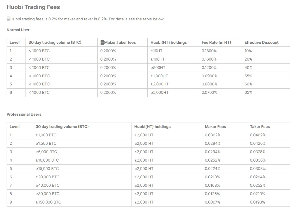 Crypto trading involves two terms – “maker” and “taker”. A ‘maker’ is someone who performs the payments, while a ‘taker’ is a person who receives it. Huobi exchange reviews show that the fees for both makers and takers are usually below 0.2%, which is significantly lower than most other exchanges. Additionally, Huobi Pro reviews show that users who hold Huobi tokens can get even lower fees. This makes Huobi a great option for those looking to trade crypto without having to pay high fees.