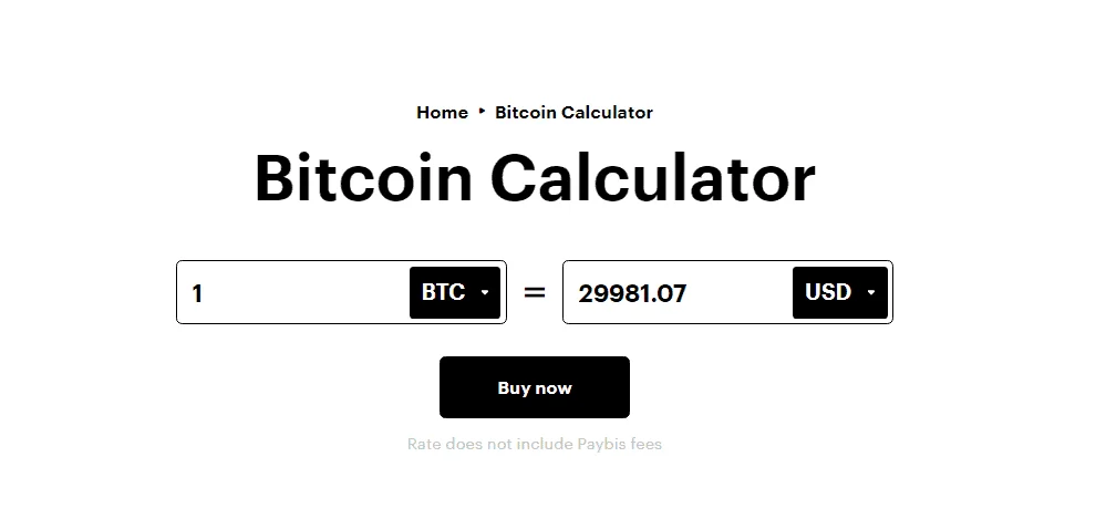 A conversion calculator is very useful. To find out how much a specific amount of any offered cryptocurrency will cost you, simply enter the amount into the Paybis website’s calculator.