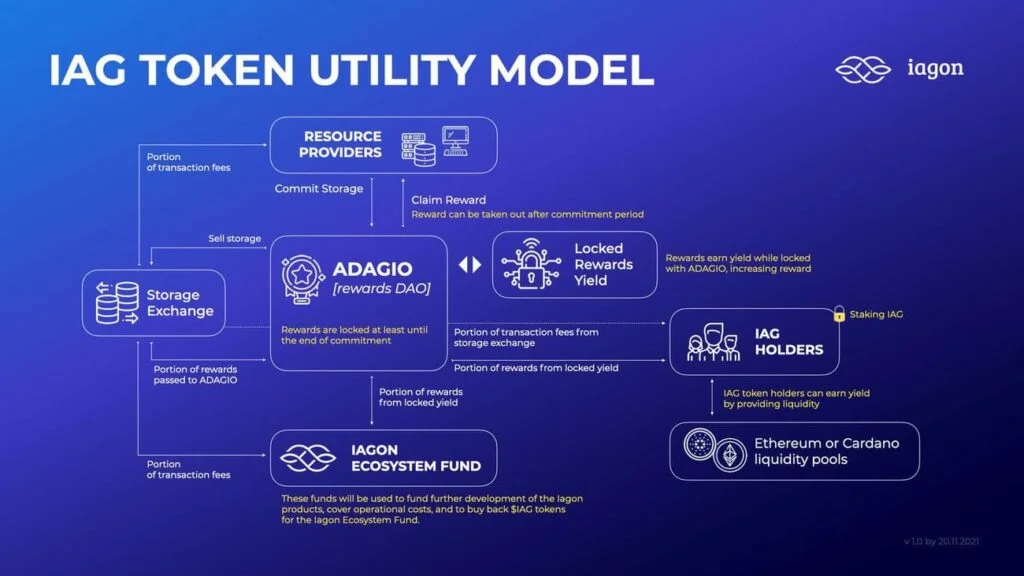 Also, there will be an option for the iagon ecosystem fund to buy $IAG tokens from the open market with the aim to refill our ADAGIO reward pool for stakers and resource providers on a regular basis.