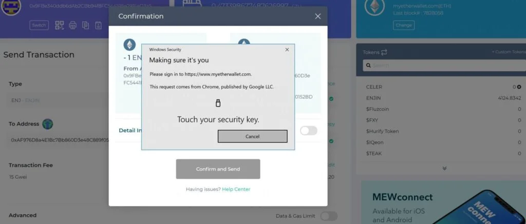 This prompt is not present in previous versions of Windows 10 and is a new feature that is meant to prove hardware security. Unfortunately some websites like MyEtherWallet, MyCrypto and IDEX will have certain delay issues when unlocking the wallet.